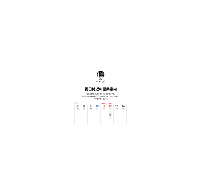 2月 祝日付近営業のお知らせ②